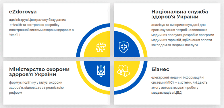 Також, забезпечує можливість створення, перегляду, обміну інформацією та документами між реєстрами, державними електронними інформаційними ресурсами, електронними медичними інформаційними системами.