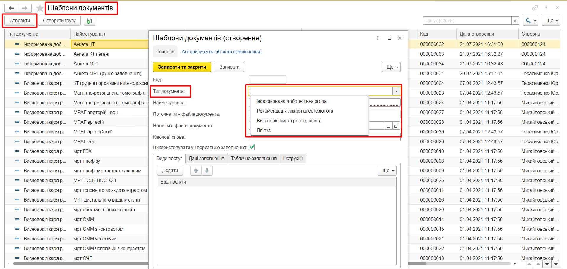 До кожного типу медичного документа може використовуватись будь-яка кількість шаблонів.