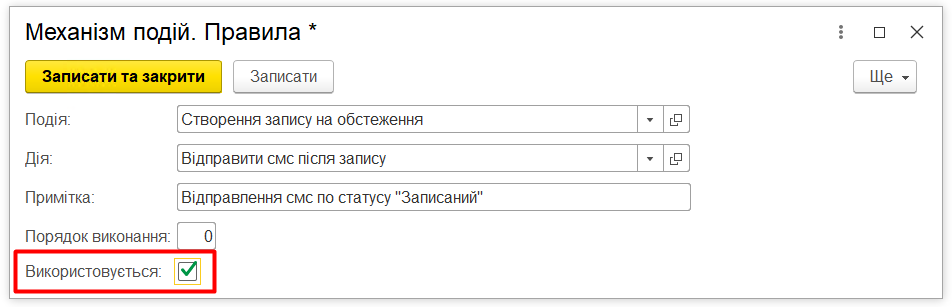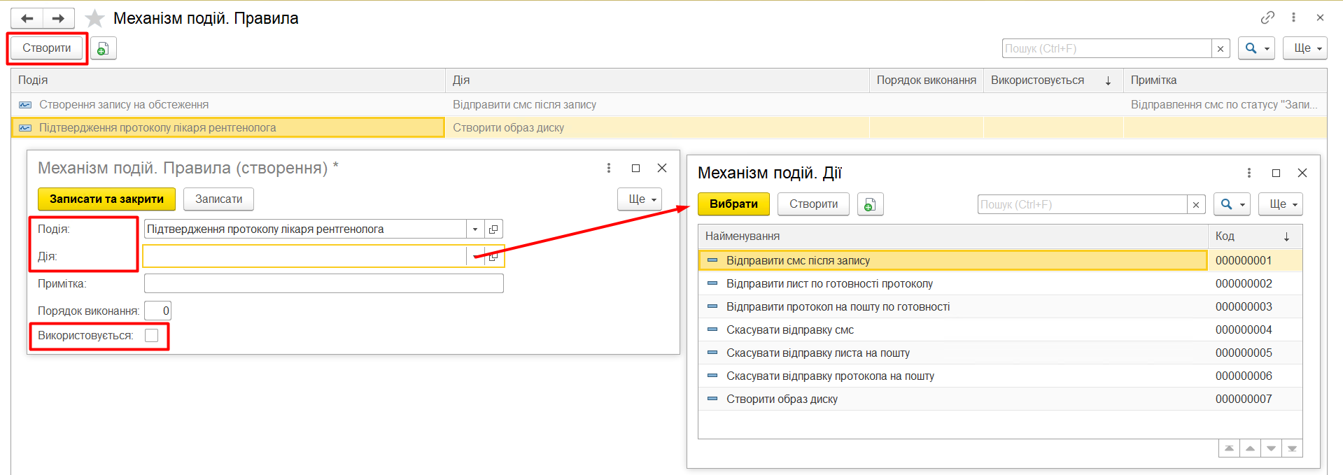 Створення запису на обстеження - Відправити смс після запису