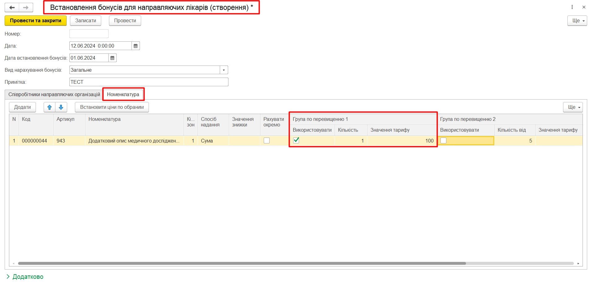 Якщо така номенклатура є в документі Встановлення бонусів для направляючих лікарів
