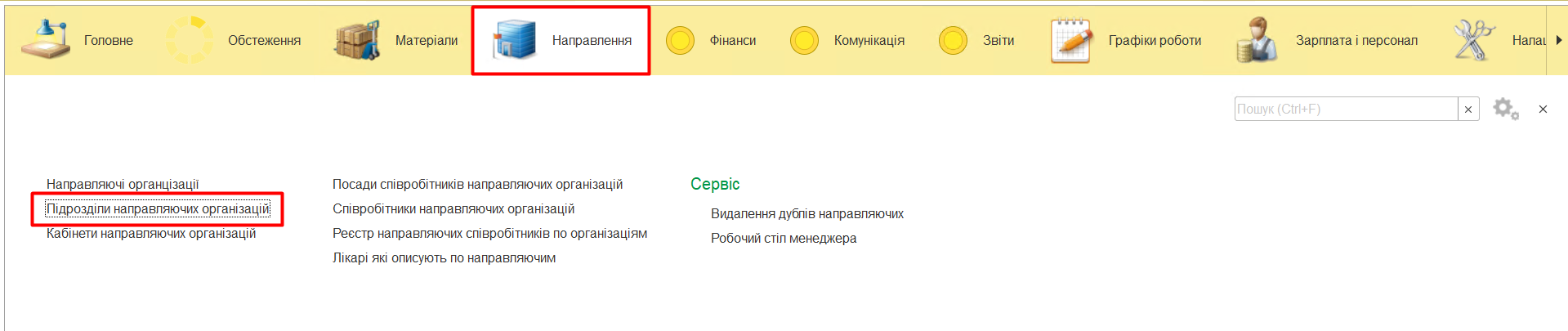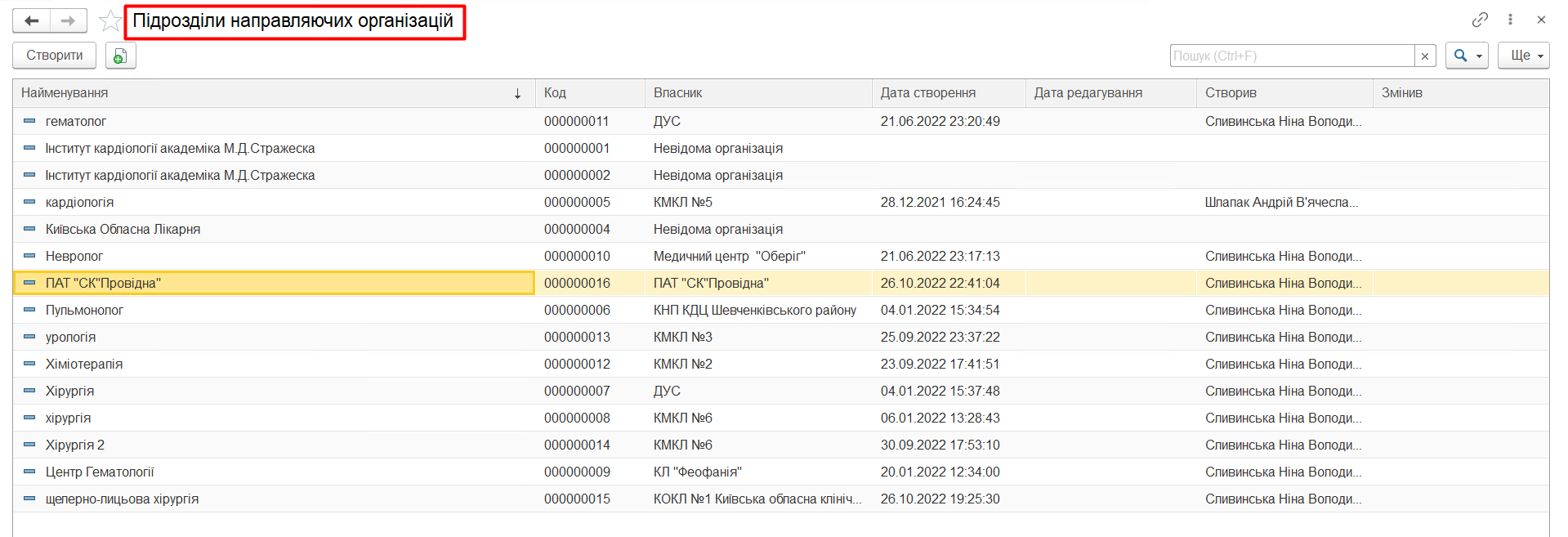 Для того, щоб переглянути або створити «Підрозділи направляючих організацій» потрібно увійти в меню «Направлення» - «Підрозділи направляючих організацій»