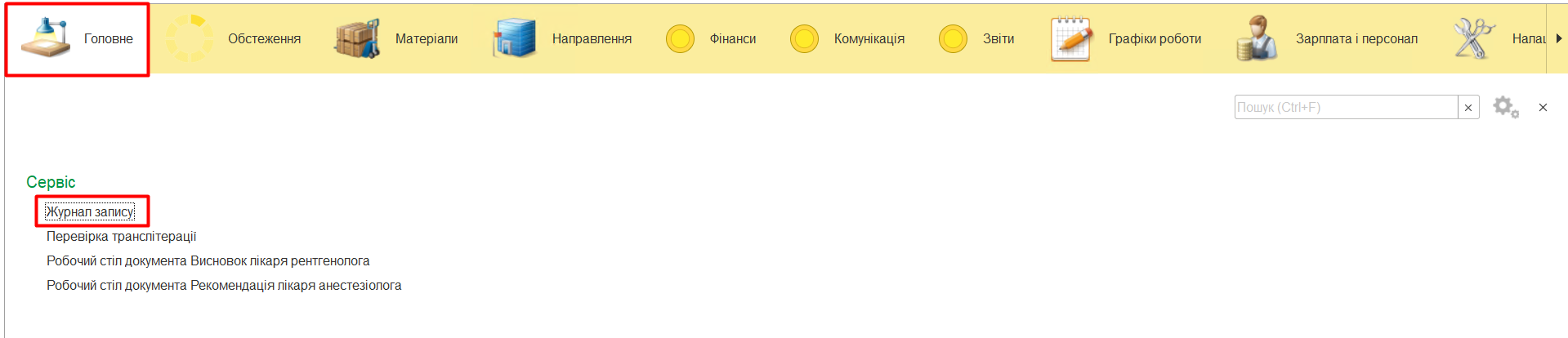 Поле Пошук дозволяє відсортувати дані в журналі.