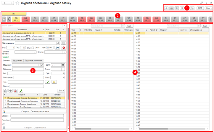 Всі дані в журналі запису можна розділити на дані пацієнта і дані запису.
