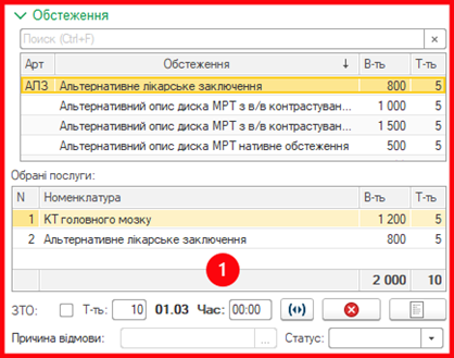 Перелік послуг, в якому відображаються результати пошуку. Послуги вибираються подвійним кліком по рядку таблиці.