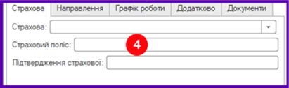 Вкладка Страхова, містить поля:
