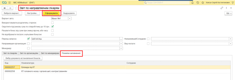 Вкладка «Помилки заповнення» з’являється лише тоді, коли у звітному періоді є послуга по якій були продажі але яка не була додана в документ «Встановлення бонусів».