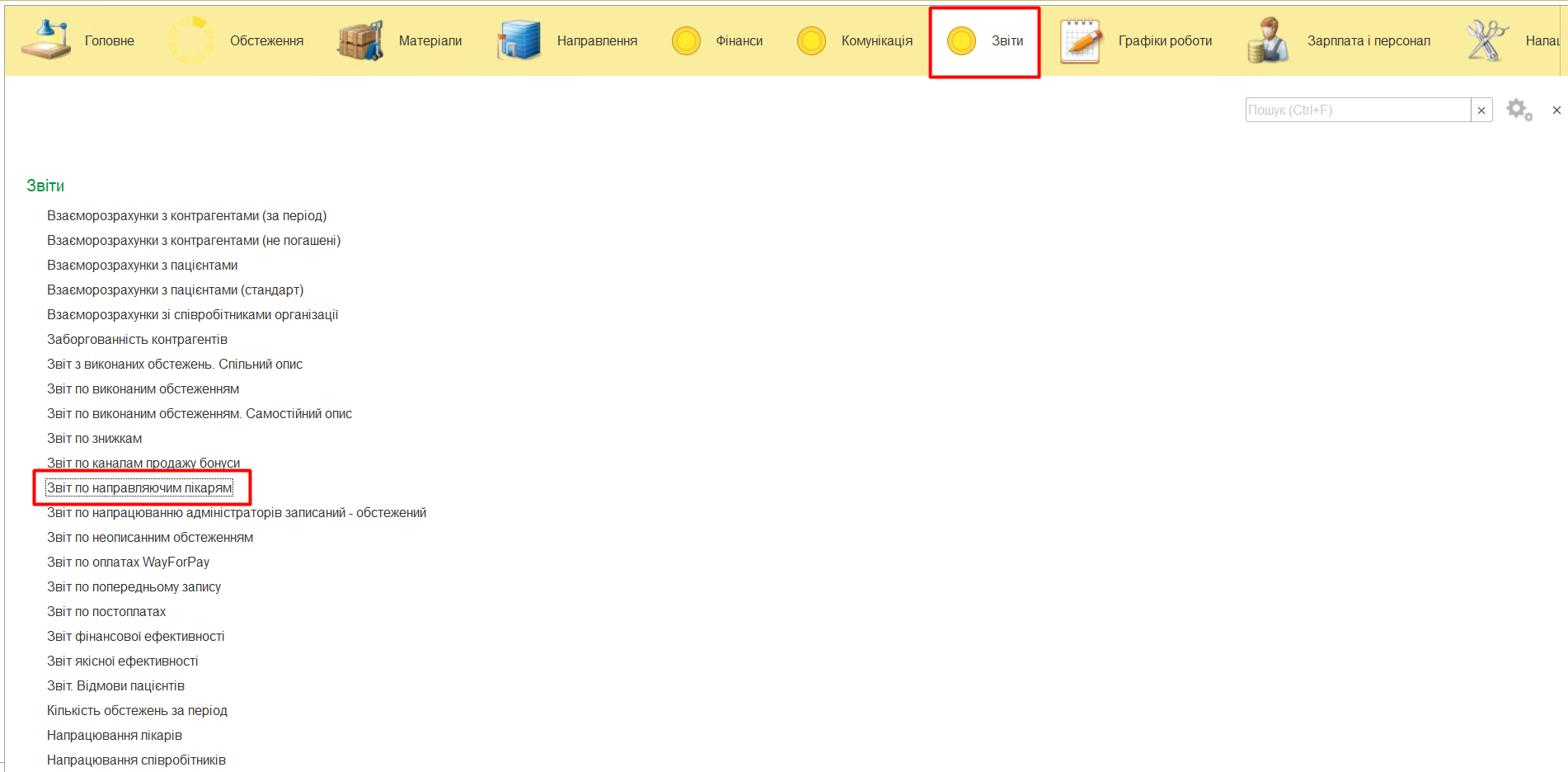 Щоб сформувати звіт необхідно відкрити «Звіти» - «Звіт по направляючим лікарям»