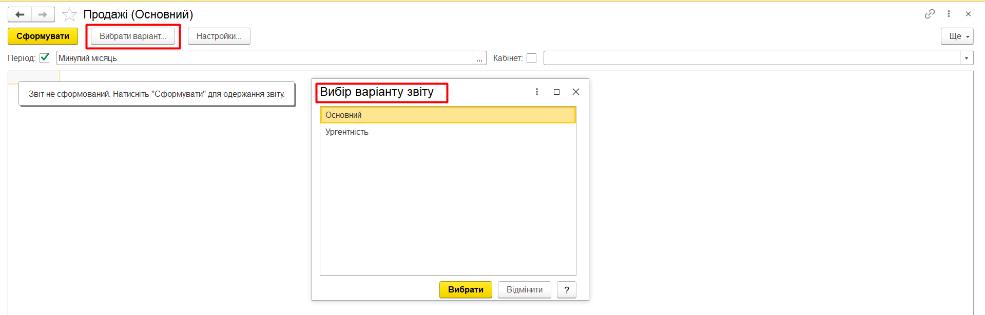 Змінити варіант звіту можливо по кнопці «Вибрати варіант».
