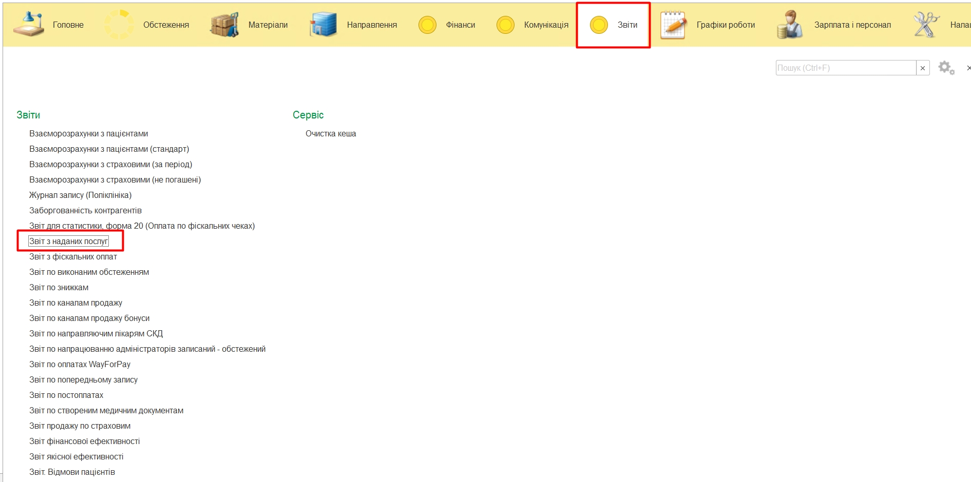 Звіт знаходиться в меню «Звіти» - «Звіт з наданих послуг»