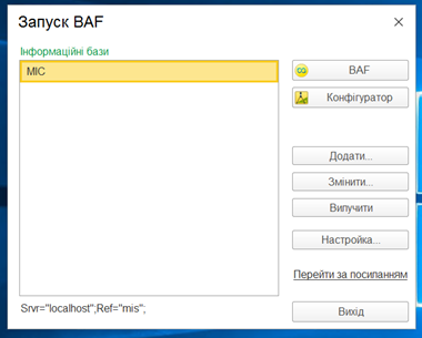 Для цього потрібно клікнути по ярлику на робочому столі і вибрати робочу БД.