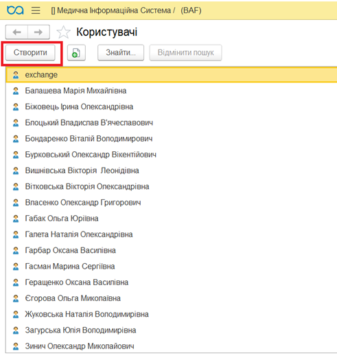 Якщо нам потрібно створити нового користувача, натискаємо кнопку «Створити»