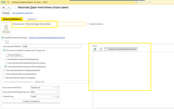 Після того, як ролі будуть налаштовані, потрібно зберегти налаштування, для цього натиснути кнопку «Записати» або «ЗаписатиІЗакрити» якщо ми закінчили налаштування і нам потрібно вийти.