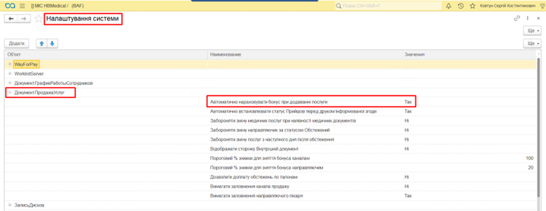 За замовчуванням по медичній послузі бонуси не встановлюються, але якщо їх теж потрібно автоматично нараховувати, це можна увімкнути в налаштуваннях.